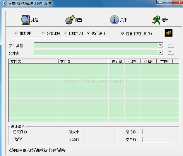 代码统计主要包括:注释行、空白行、代码行、总行数(不包括空白行)、总文件数、注释率、空白率。
