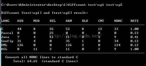 Diffcount 主要功能包括代码统计和差异统计,代码统计操作通过命令式方式操作,总体操作还算简单,适合开发者操作,代码统计相对于上面其他三个没特别优势,如果是想用差异统计推荐使用Diffcount。